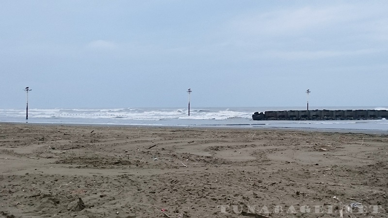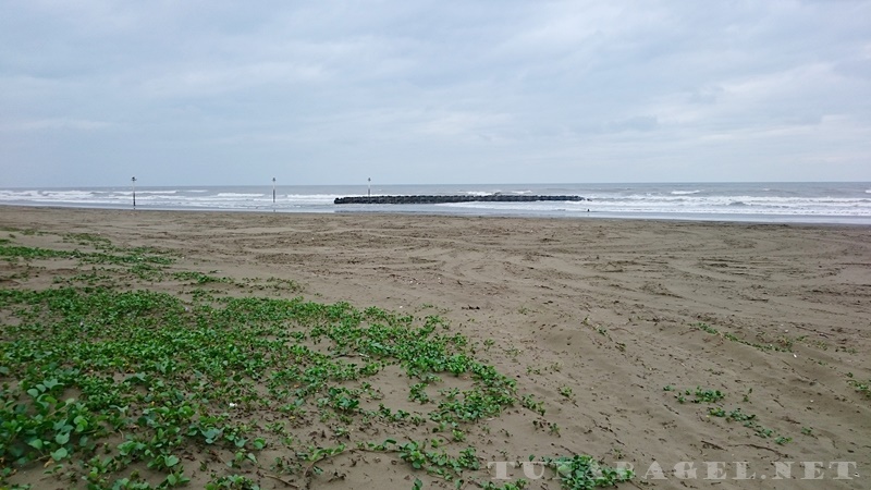 好美寮被機具碾壓過,略顯凌亂的沙灘。