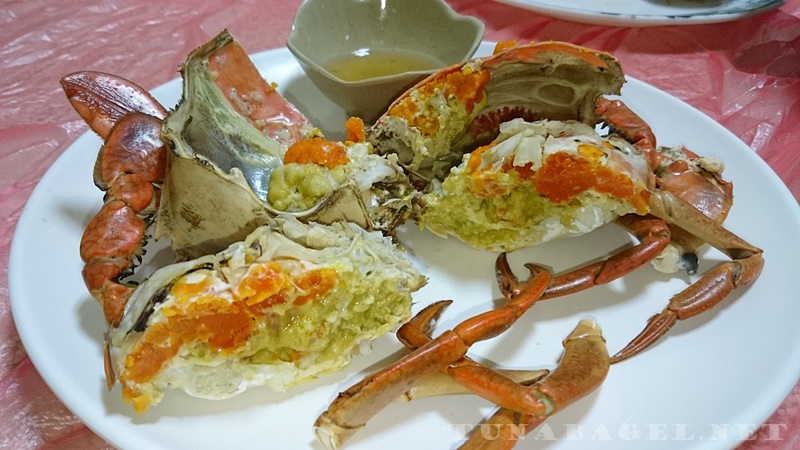 看完海之後順路吃螃蟹,布袋鎮上的英賓海產餐廳很大一家,海鮮相當新鮮,價格也很合理。但如果人在東石不用特地過來,就地吃個明華海產食堂就很讚惹!英賓海產餐廳是站在門口對著海鮮們點菜,大隻紅蟳秤重約六七百元,加上另外五道菜,兩個人當天結帳金額是新台幣 1340 元。