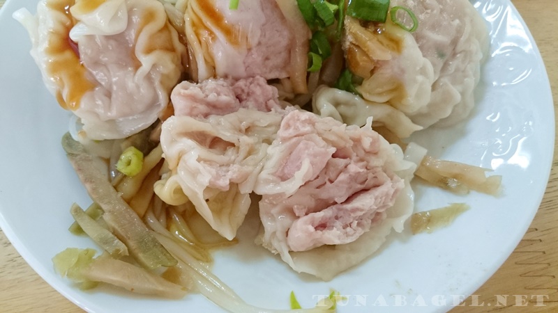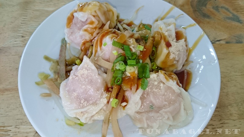 小份的乾拌餛飩記得是 55 元,大份應該是 75 元。每一顆都超級霹靂無敵大,當然沒有宇宙大燒賣那麼威啦,但也算是出類拔萃、很敢用料了。淋上簡單的淡味醬油膏和白胡椒粉,搭配豆芽、榨菜和青蔥,濃郁厚實的豬肉滋味讓我無法自拔(回教徒有事嗎)。