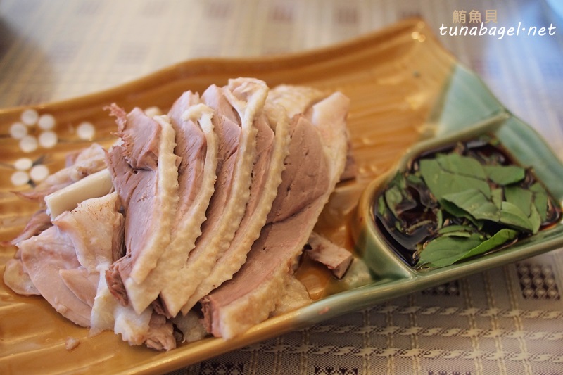 簡單的白切鵝肉口感稍微硬,大概就像你阿罵怕肉沒熟煮久了點那樣。鵝肉沾九層塔醬油吃,相當地樸實,就像家裡廚房端出來的食物。當然不像民雄鵝肉那種一口接一口噴汁、海放其他鵝肉餐廳的等級,這盤肉質有比較乾一些,可是完全不會想跟它計較,是種奇妙的心情(為甚麼會這樣啊?)。