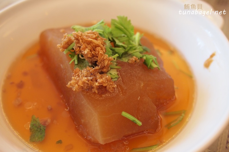 總共是五菜一湯,第二道是冬瓜封,『封』這個字有悶煮時不能打開鍋蓋的意思,可是不打開的話,怎麼知道煮好了沒啊?萬一煮半天結果發現根本沒開瓦斯…. …嗯,那可能需要馬上去笨板接受治療(誤)。總之我不喜歡冬瓜(冬瓜青我可以),但這種燉到每一吋都是醬油味,清清爽爽、頭上灑點蔥酥還是蒜酥的不軟爛冬瓜,吃起來還挺順口的。