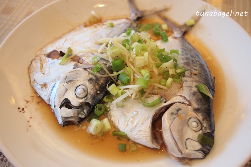 最後是兩尾清蒸鯧魚(感謝網友更正,這叫皮刀來著,黃榮燦要多吃一點),感覺很猙獰(喂),有魚類恐懼症的人請閉著眼睛夾。肉質算是細嫩,新鮮度一般,要再新鮮就到海邊吧,老闆擺明不坑人,不用紅燒欺騙客人味覺,就像你阿罵會騙你嗎?(嗯,其實會啊… …zzz)