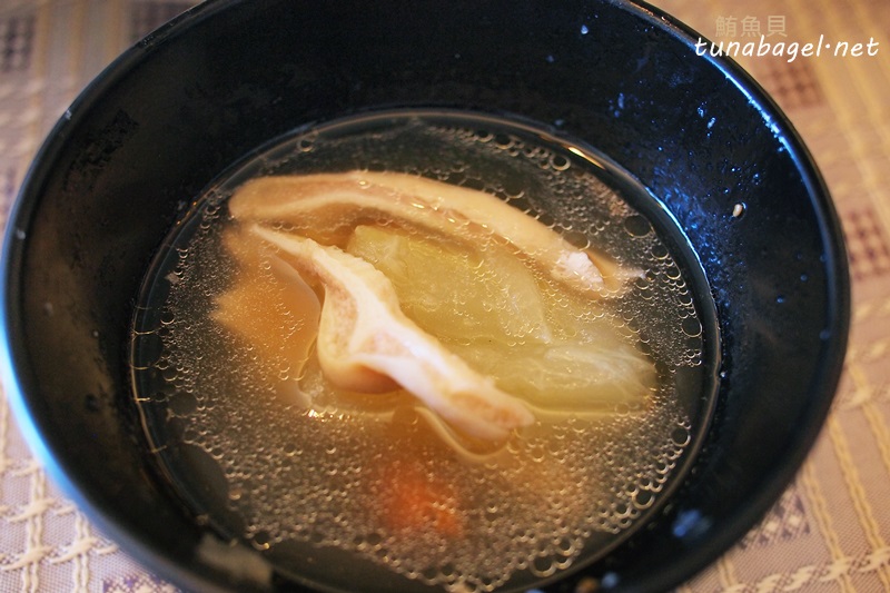 湯是最後上桌的,因為吃了三碗飯已經飽了,看到豬肚刺瓜湯忽然傻眼。湯頭帶有微微的藥膳香味,簡單說就是『很好喝』。湯裡可以看見紅色的枸杞,阿罵說可以明目,所以小時候吃了很多,但顯然阿罵是唬爛的因為我還是近視了,但我想那都是中藥店的人唬爛她,絕非她自己無中生有地(不要再解釋了)。