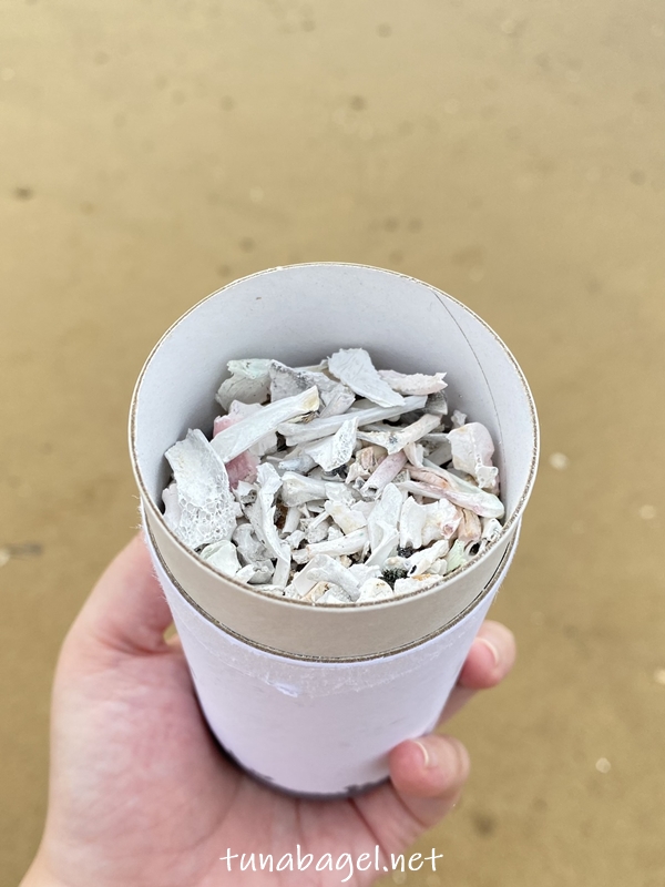 抵達海邊準備開罐的時候,突然非常難過地哭了,分開的時候終於到了啊!心情平復之後一把一把將骨灰撒到海中,骨灰還真的有點受潮結塊……原來骨灰哏都是真的。