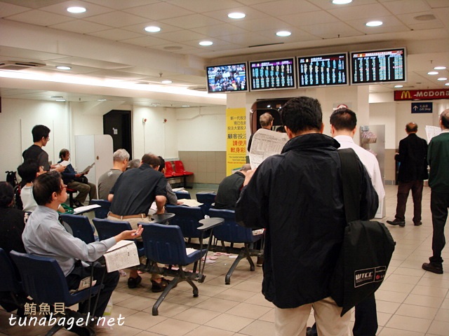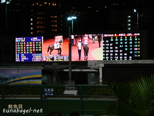 不過呢,內行人義順牛奶公司的老闆沒有虎爛我們,那天是星期三,賭馬從 19:00~23:00 假不了。我們趕上了 22:50 最後一次賭馬,喔耶,只要場內有人,基本上就還有賽事。