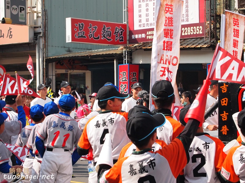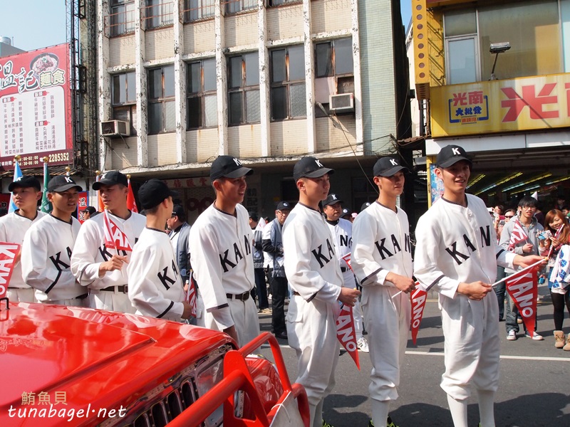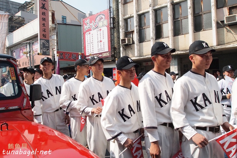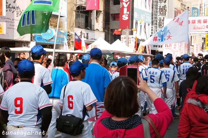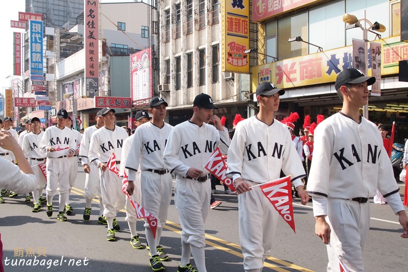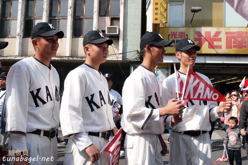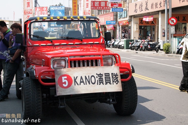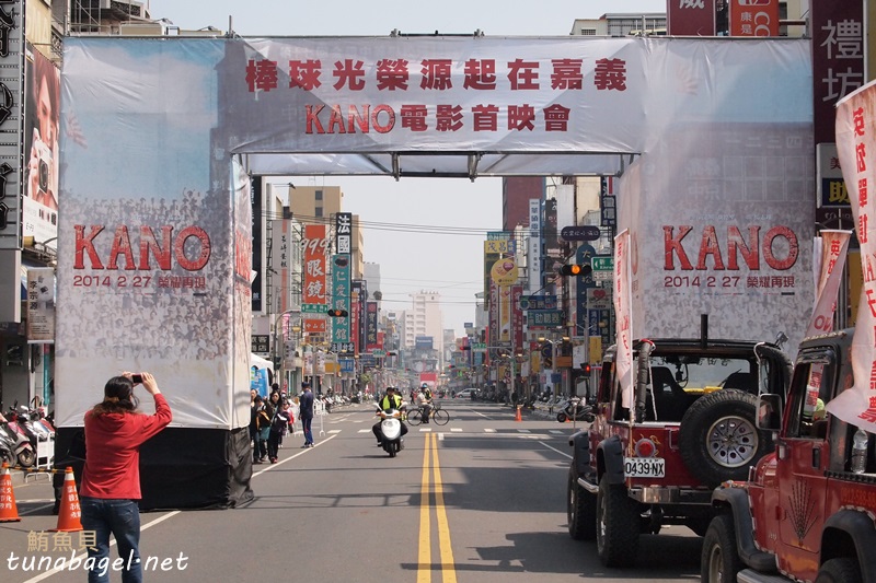 KANO球員會搭乘臺鐵KANO列車到嘉義站,重現當時光榮返鄉的場景。中山路從早上10點封街到晚上6點,警察先生一大早就在站崗兼拖吊違規停車,問了一下才知道下午兩點開始遊行。吐槽一下,首映票跟火車票一起賣,意思是當地人只能當鄉民圍觀看熱鬧嗎=_=?