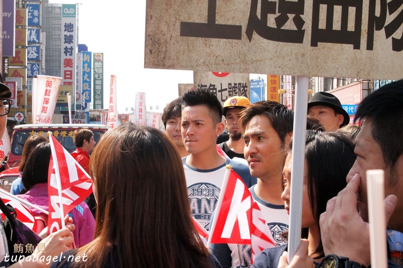 話說這是第一次拍遊行感覺有挑對位置,在KANO演員的吉普車旁邊伺機而動真是方便,開始遊行前的空檔可以一張拍不夠再拍第二張(好熟悉的句子)。魏德聖把親朋好友都叫來遊行了,所以海角七號和賽德克巴萊的演員都會現身!
