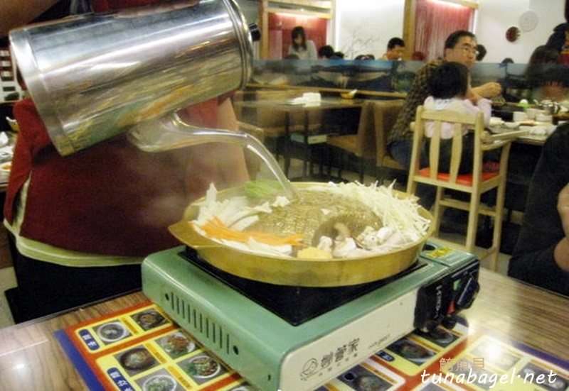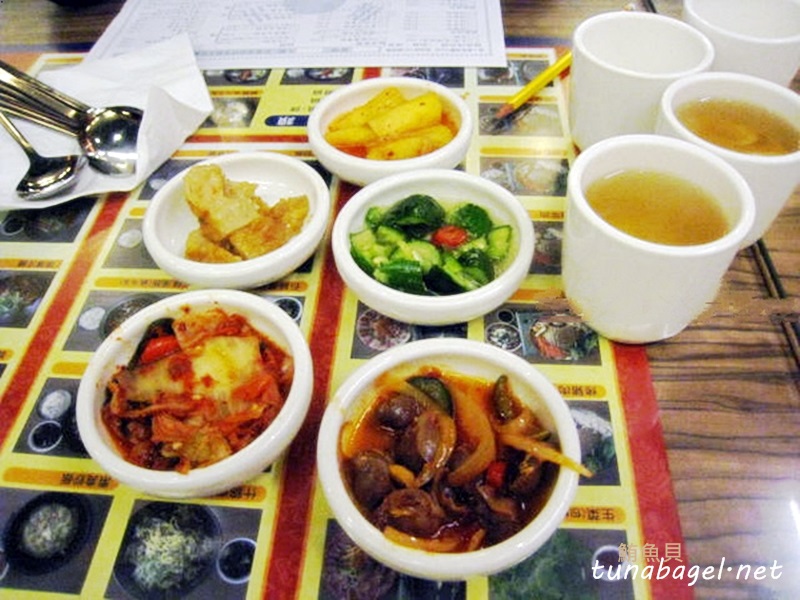 這是他們很嫌棄的東西,先猜猜他是什麼吧,別人都會稱讚說「哇~好有韓國風情喔~!」但是他們兩個死人卻異口同聲的說「這是什麼乞丐的破碗。。。」其實是白飯、其實很不需要出現在這,因為三個人點三道菜,就已經快撐死了。小強說這是他第一次跟我們到餐廳吃飯「竟然吃的飽!」