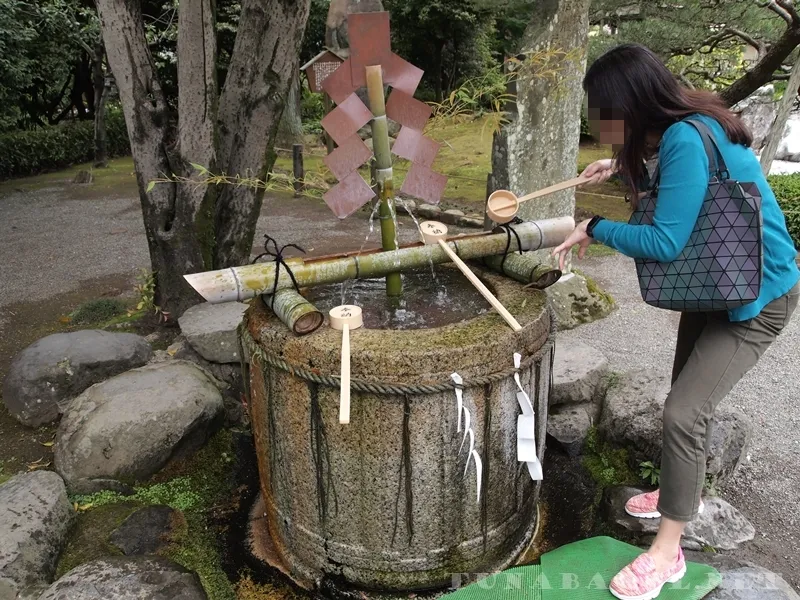 手水舍的「長壽之水」同樣是阿蘇山伏流,飲用之後長命百歲。