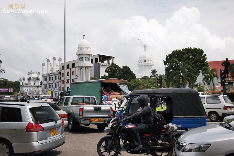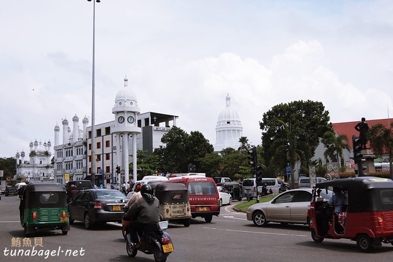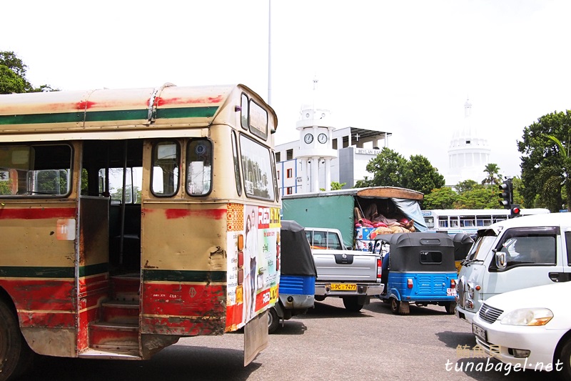 斯里蘭卡雖然是熱帶地區,但普通巴士是沒有冷氣的,那種小小台、開很快的小巴,才是有冷氣的AC巴士。那天小巴上的售票員是位老先生,胖胖的,笑起來和藹可親。到可倫坡100盧比,塞勒,剛剛那些錢居然可以搭十趟。機場到首都大概一個小時車程,花時間是因為道路尚未完全現代化,有些路段瀰漫黃沙相當復古(意料之外啊哈哈)。此外交通號誌稀少,容易變成交通大亂鬥。